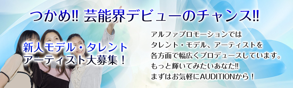 アルファプロモーションでは アーテスト、タレント、モデルと各方面幅広くプロデュースしています。